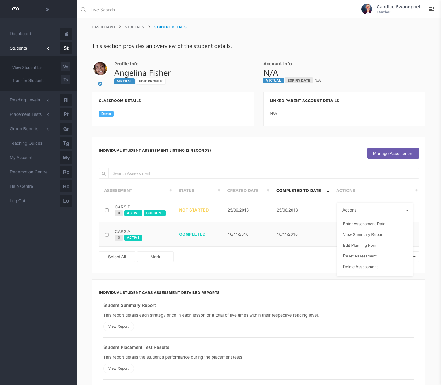 - After which, you can find all the assessments in the Individual Student Assessment Listing section.