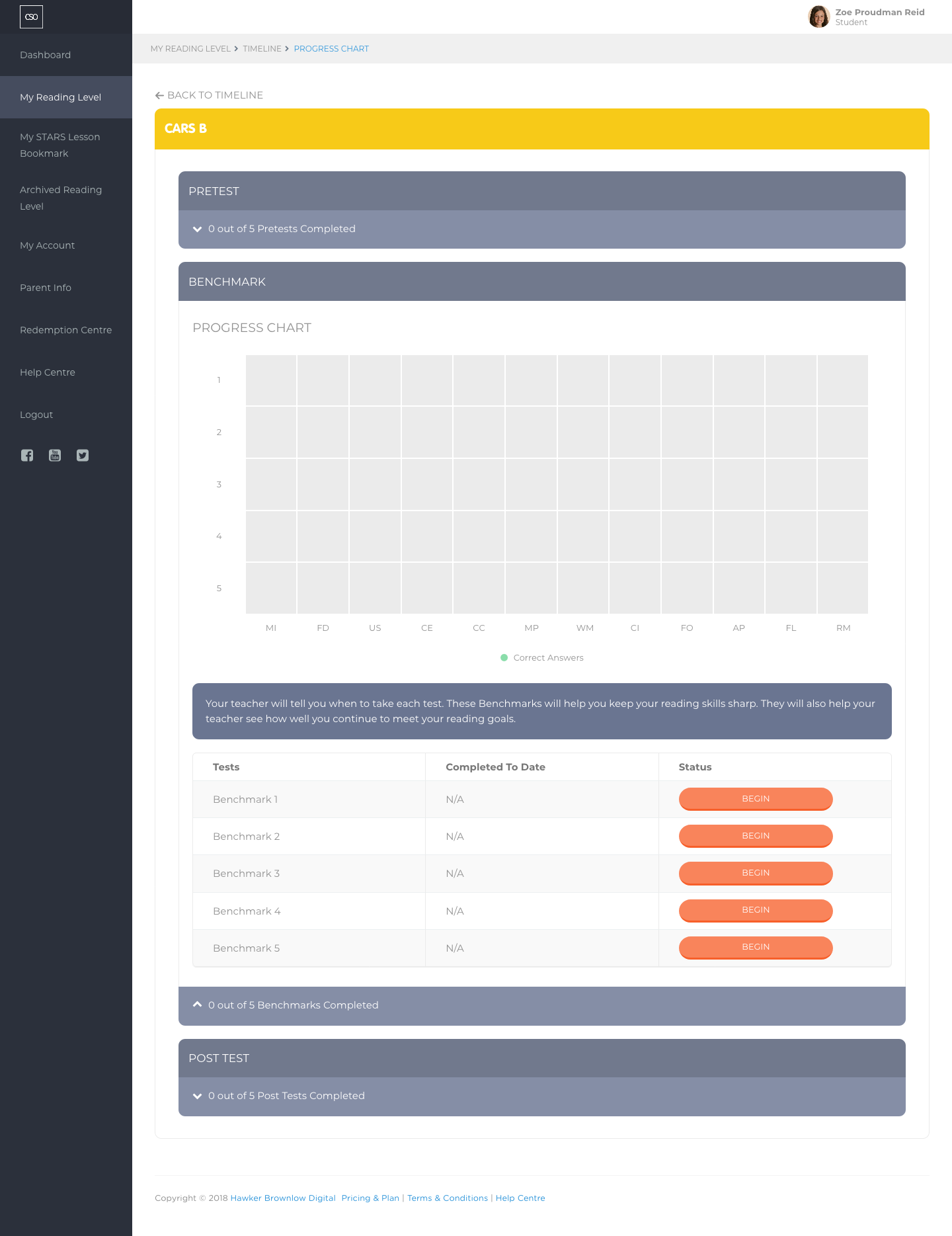 Your student will be working at Benchmarks. Click the Begin button to start the assessment.