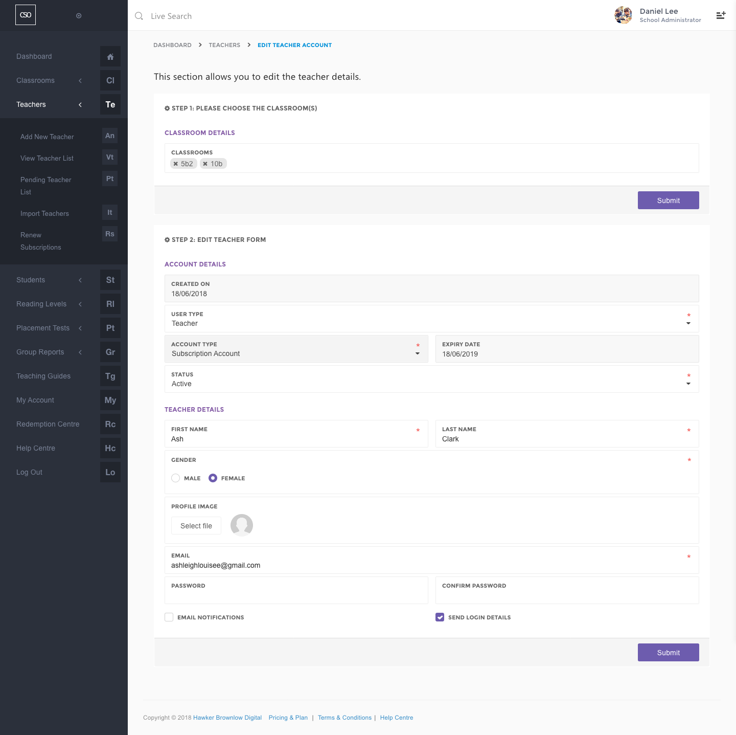- Once you have redirected to the Edit Teacher Account page, you may tick Send Login Details checkbox to send your teacher login details