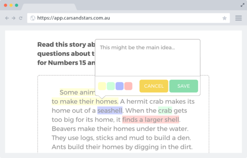 Absolutely, your students can now type their thoughts and comments right into the engaging stories found in CARS & STARS. Your students can use various colours to emphasise different ideas or to connect important ideas to review that information later.